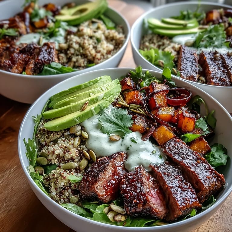 Pin it One Sunday, I packed these bowls into containers for the week ahead, and by Wednesday my coworker asked why my lunch smelled so good. I handed over the recipe on a sticky note, and she texted me a photo of her own version that night: she'd added crumbled goat cheese and swapped the steak for spiced chickpeas. It reminded me that the best recipes aren't rigid formulas, they're starting points that make room for whatever you have on hand or whatever sounds good that day.