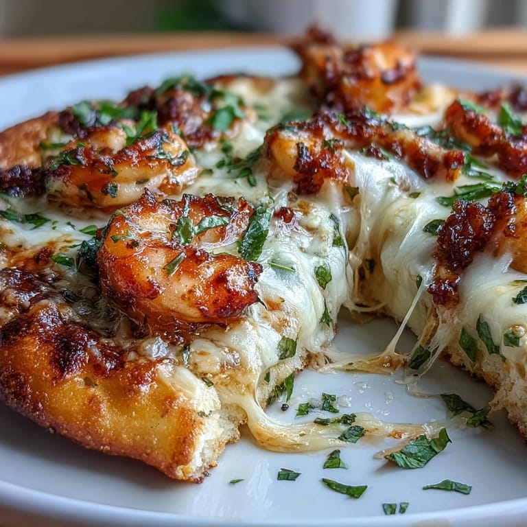 The cream transforms what could be a simple garlic butter into something luxurious and coating, so each bite of shrimp carries flavor through to the naan underneath. When you stir in the parsley at the end, you're adding a brightness that keeps everything from feeling too heavy, which is crucial when you're piling cheese on top. This sauce also works beautifully over pasta if you have leftover shrimp and want a different meal tomorrow.