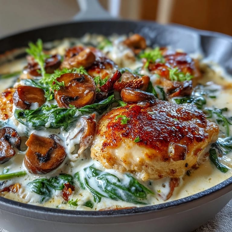 I've made this with chicken thighs instead of breasts when I wanted even more tenderness and flavor—the thighs stay juicier through the cooking process. I've also swapped spinach for fresh kale or arugula when I wanted different textures, and both work beautifully. One time I added sun-dried tomatoes and it shifted the entire flavor profile toward something more Mediterranean, which my guests preferred.