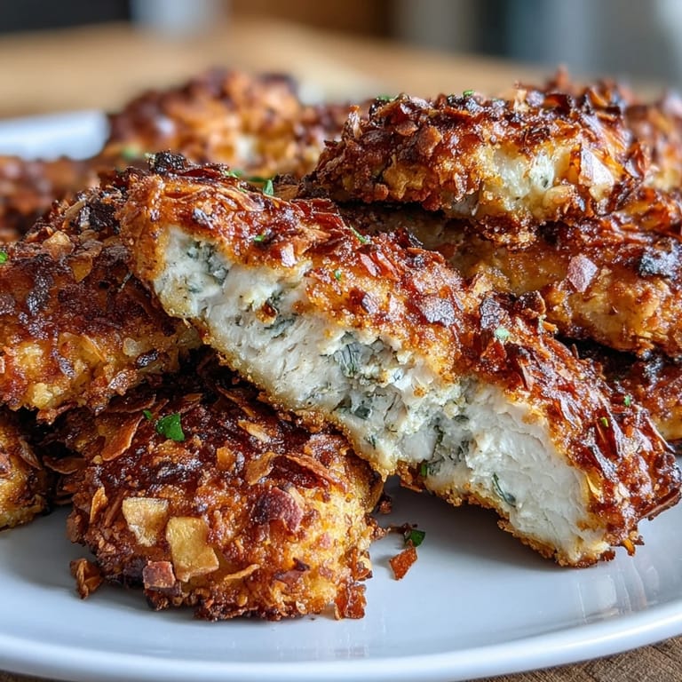 Save My sister called me in a panic one weeknight, desperate for something that felt indulgent but wouldn't derail her keto goals. I had some chicken tenders thawing and a block of Parmesan I'd been meaning to use, so I started experimenting with a crispy coating that didn't rely on breadcrumbs. What emerged was pure alchemy—golden, shattering crust that stayed crunchy even after a quick bake, paired with a slaw so tangy and creamy it made the whole plate sing. She texted me the next morning asking if I could teach her how to make it. That's when I knew this one was a keeper.