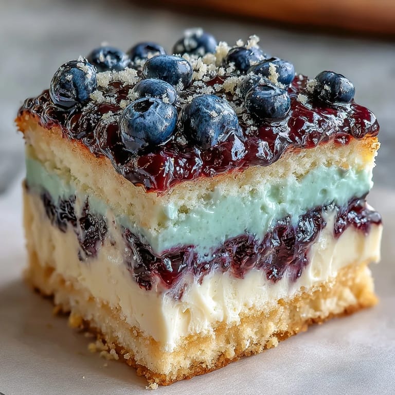 Last summer, I brought this to a neighborhood potluck and watched three different people ask for the recipe within ten minutes of serving. What I love most is how the blueberry compote creates those gorgeous streaks through the pale lemon mousse, like edible marble. My neighbor's daughter kept calling it the pretty purple cake and begged to take the last slice home.