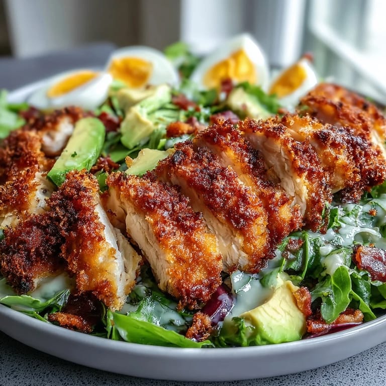 Save There's something about the sound of chicken thighs hitting a hot baking sheet that signals good things are coming. I was experimenting one weeknight, tired of the same old salad routine, when I thought: what if I gave that tender chicken thigh the crispy Parmesan treatment instead of the usual pan-sear? The result was unexpectedly magnificent—golden, crunchy edges that stayed juicy inside, and suddenly a simple salad became something worth clearing your plate for. This Parmesan crusted chicken Cobb salad became my answer to the question I didn't even know I was asking.