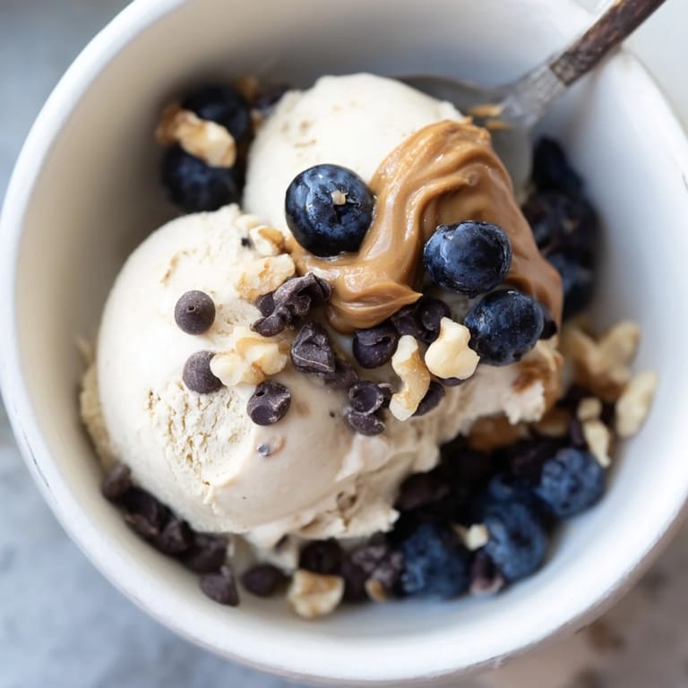 The toppings are where your ice cream becomes something you're genuinely excited to eat rather than just a protein vehicle. Fresh berries stay brighter if you add them right before eating, while nuts and seeds can go on even if they sit for a minute. If you're making these for the week, you can store the unfrozen base in the pint for up to three days before freezing, and the frozen pint lasts about two weeks in the freezer before ice crystals make the texture grainy.