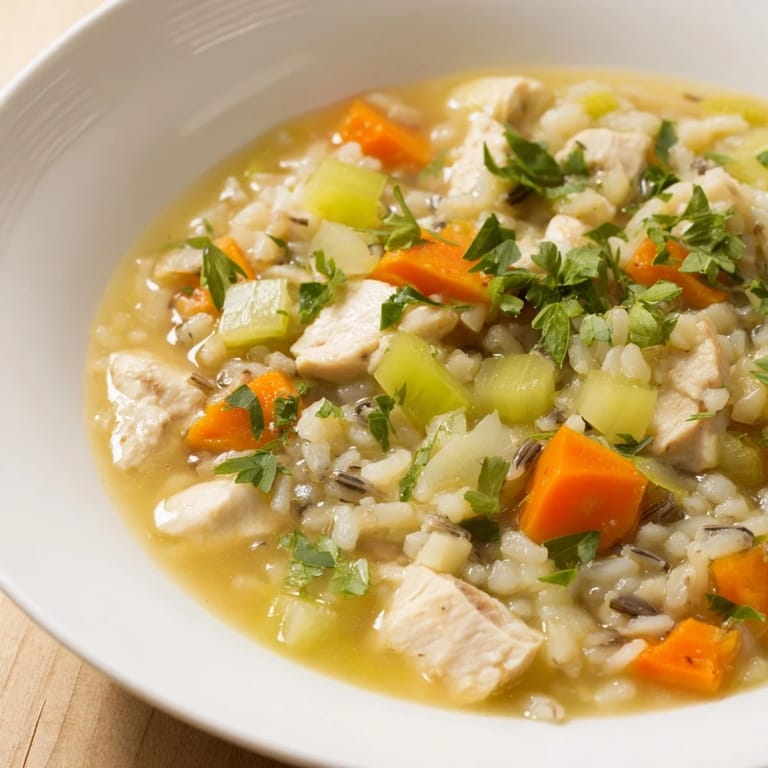 Save A comforting, hearty soup featuring tender chicken, nutty wild rice, and fresh vegetables in a savory broth—perfect for a cozy meal any night of the week.