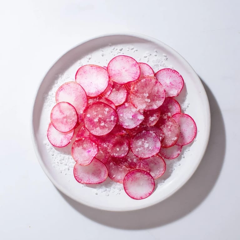 Save A crisp, refreshing snack featuring peppery radishes simply enhanced with flaky sea saltβperfect for a light appetizer or a healthy nibble.