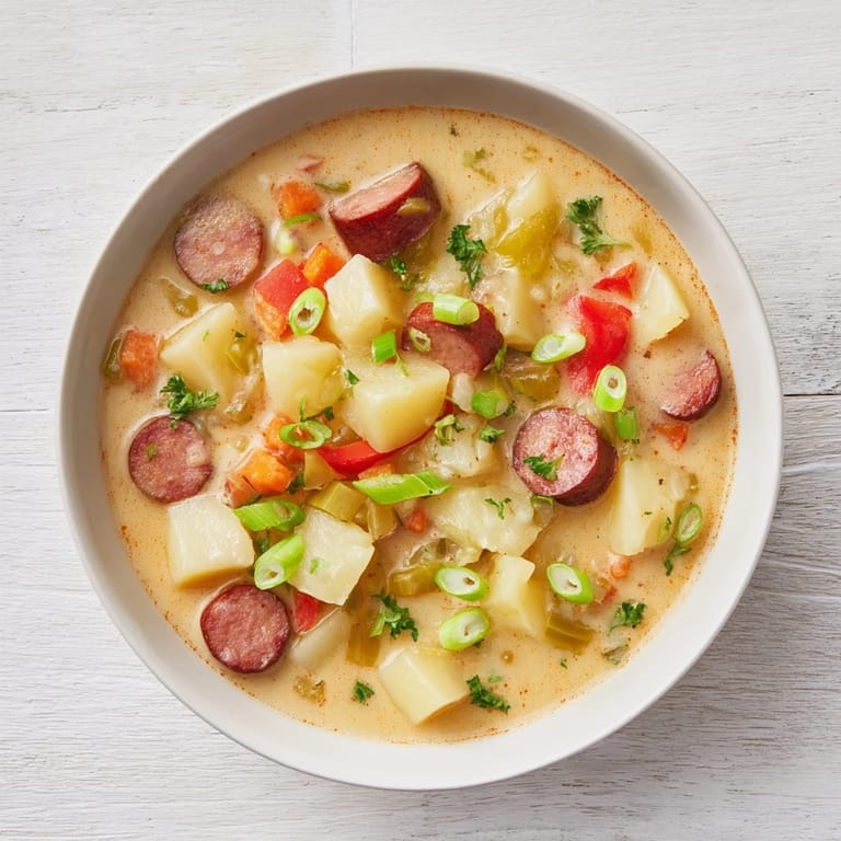 Save A hearty, flavorful soup featuring tender potatoes, vegetables, and Cajun spices, all simmered to perfection in a slow cooker. Perfect for a comforting weeknight meal.