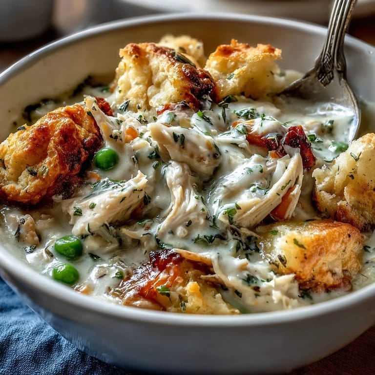I made this for my sister during one of her surprise visits, and she walked in the door to that unmistakable smell of chicken, herbs, and cream simmering together. She didn't even take off her coat before asking what was for dinner, and when I ladled bowls topped with a buttery biscuit, she closed her eyes on that first spoonful like she was remembering something good. That's when I knew this recipe was keeper—it had the power to make someone feel immediately at home.