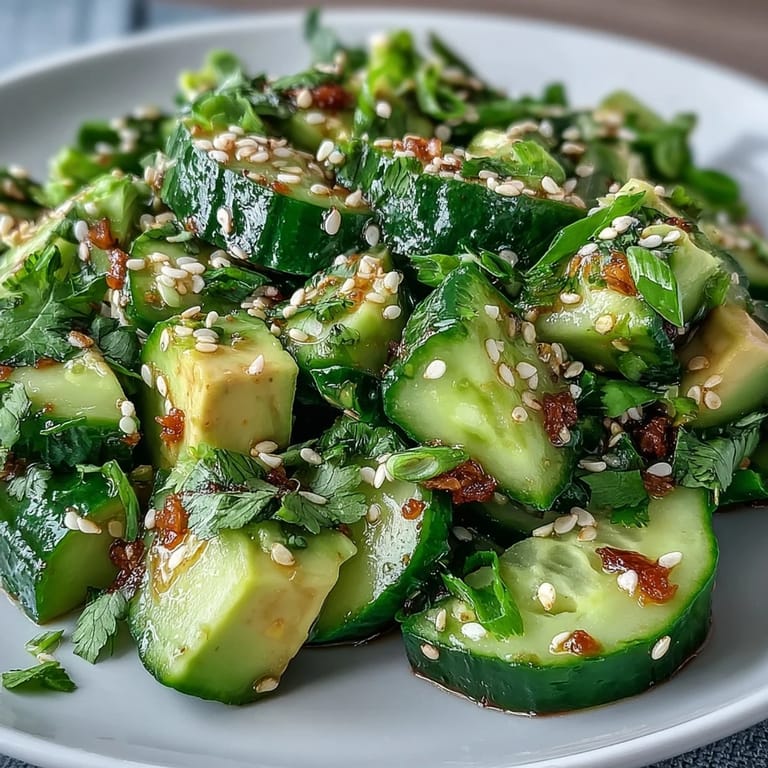 The snap of the cucumber, the plushness of avocado, and the nutty crunch from sesame seeds are what make every bite interesting. Don’t be afraid of letting your cucumbers look a bit rough—the jagged edges hold onto dressing better than neat slices. If you’re nervous about tossing everything without smashing the avocado, use your hands for ultimate control.