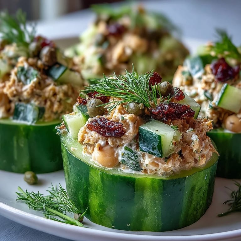 Save Last summer, I was hunting for something that felt like lunch but didn't weigh me down before an afternoon hike. A friend casually mentioned her chickpea salad tucked into cucumber halves, and I remember thinking it sounded almost too simple to matter. The first time I made it, the kitchen smelled bright and vinegary from the pickles and mustard, and something about how the cold, crisp cucumbers held that zesty, creamy filling made it feel elegant despite taking barely twenty minutes. It's become my go-to when I want something that tastes like care without the fuss.